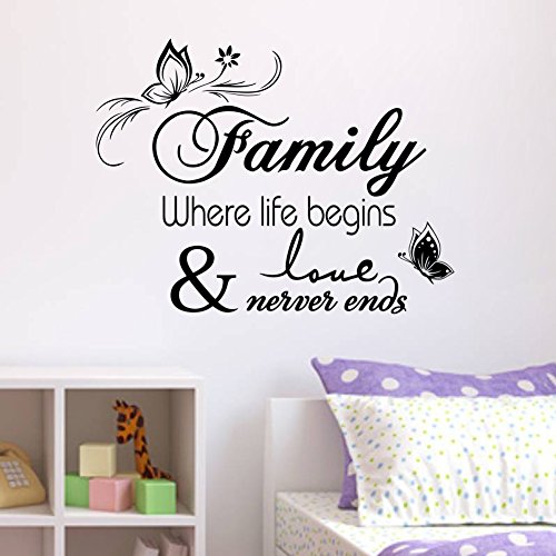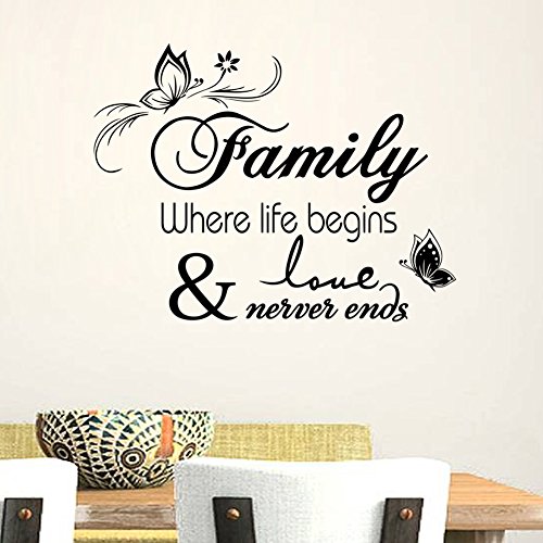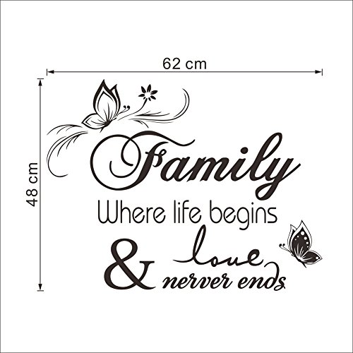 -. Title : Family Where Life Begins Love Never Ends Quotes and Sayings Wall Decal Vinyl Removable Wall Sticker for Home Decor Luckkyy