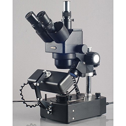 AmScope SH-2TY-SL-DK Professional Trinocular Stereo Zoom Microscope, WF10x and WF15x Eyepieces, 10X-60X Magnification, 1X-4X Zoom Objective, Upper/Lower/Side Lighting, 110V-120V, Includes Darkfield Condenser