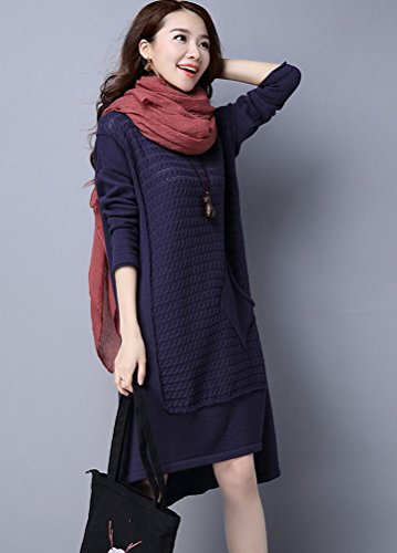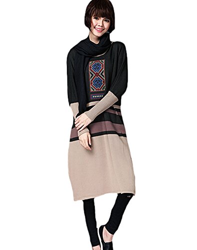 -. Binding : Apparel -. Brand : Minibee -. Department : womens -. Feature : Style 1 Size:Bust:114cm//44.9",Length:102cm//40.2" / Style 2 Size:Bust:120cm//47.2",Length:90-99cm//35.4"-38.9" / Long Sleeve Sweater Patchwork Dress / Match Dust Coat and Trench Coat well / PS:due to the light and shoting angle, the color has a little difference, please note that. -. ProductGroup : Apparel -. ProductTypeName : DRESS -. Title : Minibee Women's Retro Patchwork Dress Sweater Fit US 0-12