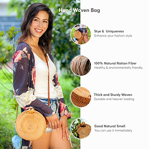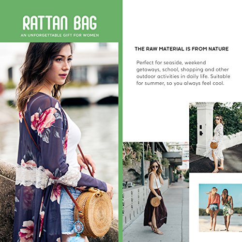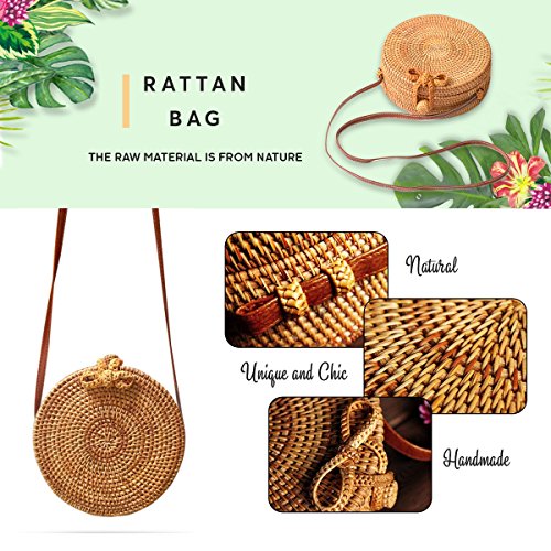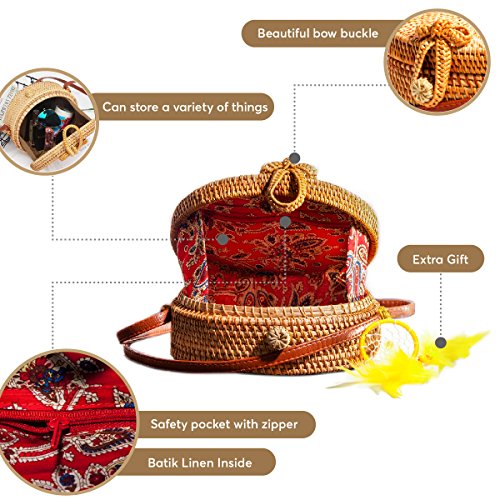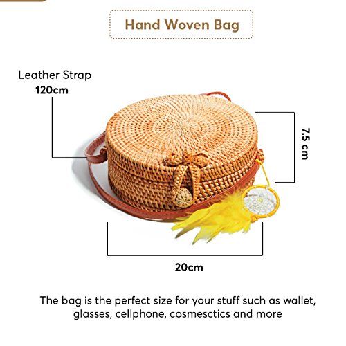 PREMIUM QUALITY: This is outstanding item with upgrade materials: round woven rattan bag, leather strap and beautiful natural cloth inside. We also sand/polish the surface of rattan to ensure no scratch when using.