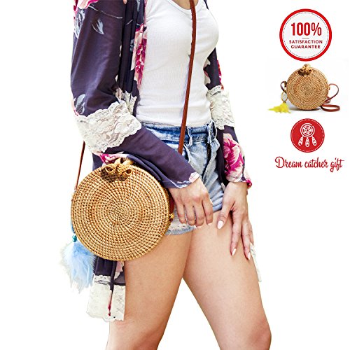 Crazy Deals- PREMIUM Round Rattan Bag for Women & Bonus Dream Catcher
