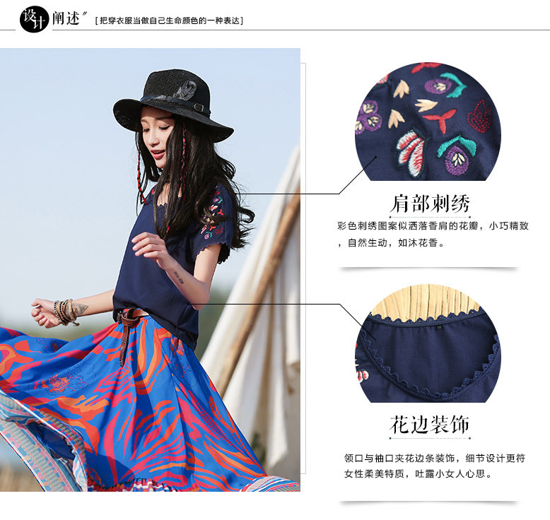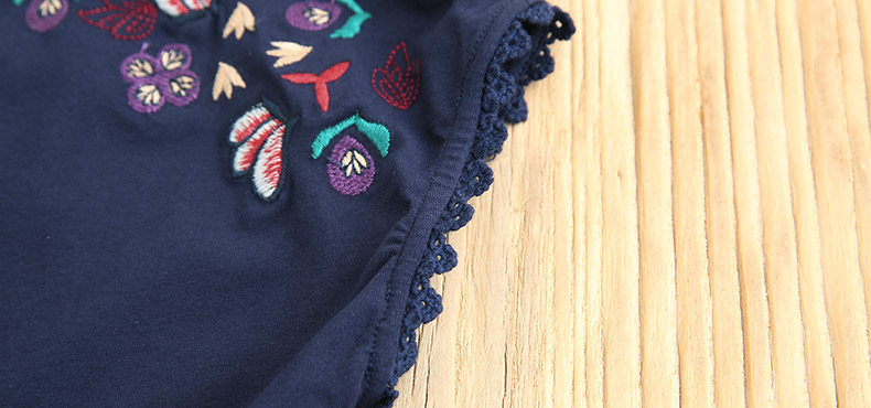 彩色刺绣图案似洒落香肩的花瓣,小巧精致,自然生动,如沐花香。肩部刺绣