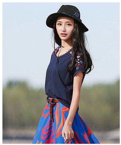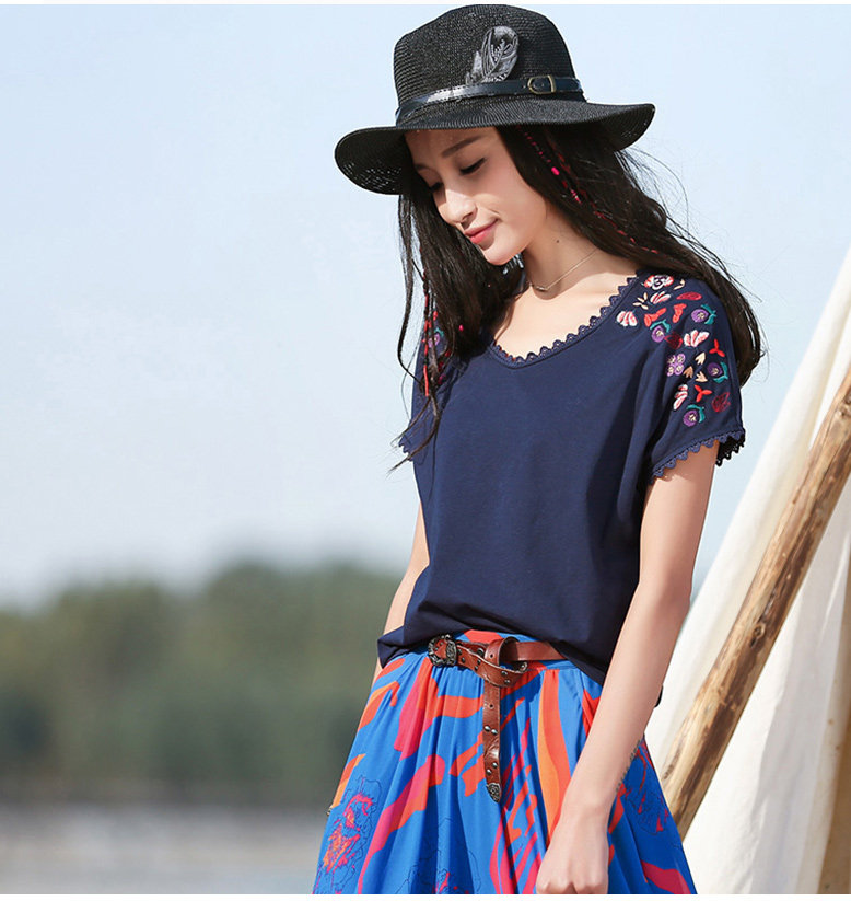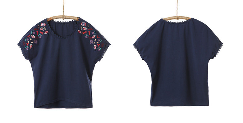 刺绣宽松短袖针织T恤