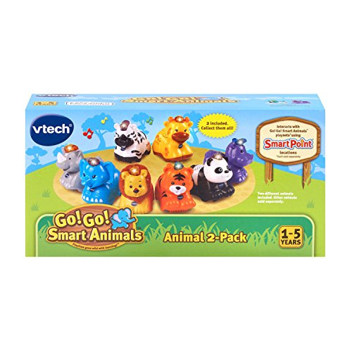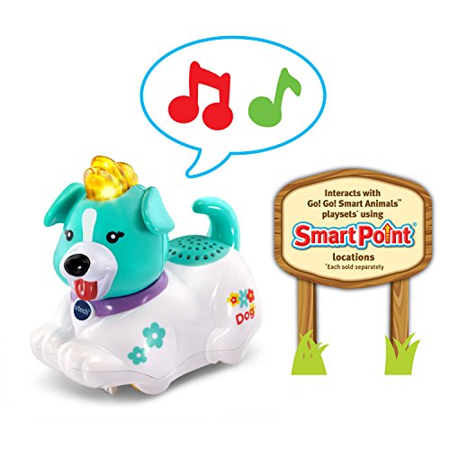 Explore the playsets with Go! Go! Smart Animals characters! Each is a friendly animal who says fun phrases and plays music and sounds when the light-up button is pressed. Roll over SmartPoint locations on playsets and the SmartPoint animals respond with different phrases, cheerful melodies and sing-along songs! This House Animals set comes in a pack of 2: Go! Go! Smart Animals Dog, and Go! Go! Smart Animals Cat. Through pretend play with each animal, your little one will learn about the letter of the animal's name. Hear melodies, songs, different phrases and sound effects when this toy responds to SmartPoint locations on the many Go! Go! Smart Animals playsets (each sold separately). It's playtime with miles of learning!Feature