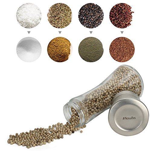 Mowiss Salt and Pepper Mill Set(2pcs) Glass&Stainless Elegant Salt Mill-Pepper Mill,Body with Adjustable Ceramic Grinder