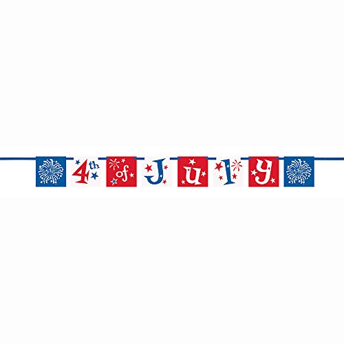 Studio : Unique Publisher : Unique Binding : Kitchen Product Description 1 4th of July Pennant Banner, 4th of July Banner measures approximately 4.5ft, Drape this 4th of July party banner across a food table, tape to the walls, or hang above a doorway or window, Pennants with fireworks and "4th of July" text transform a 4th of July party space with festive charm, Coordinate with other 4th of July decorations and party supplies from Unique. 0