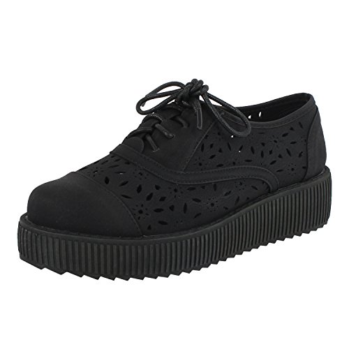 -. Title : Womens Black Round Toe Platform Wedge Lace Up Suede Oxford-Flats