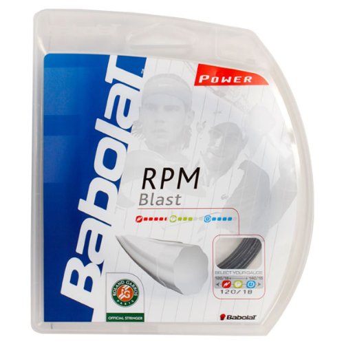 Studio : Babolat Publisher : Babolat Binding : Sports Product Description The Babolat RPM Blast 18 offers greater spin generation at the expense of some durability compared to the thicker 16 gauge version This string shares the same basic construction and copolyester composition as the popular Babolat Pro Hurricane Tour with a few minor tweaks The RPM Blast stays with the octagonal profile but enhances the spin generation through the use of a new dye and coating The black color of this string makes it play slightly stiffer than the yellow Pro Hurricane Tour while the new silicone coating is designed to allow the strings to slide across each other easier This serves two purposes the first is that the string can move easily effectively allowing the stringbed to play as a more open pattern than it is The second of course is to enhance durability by lessening string to string friction Babolats RPM Blast is a popular choice among strong baseliners seeking durability and spin to dictate the actionConstruction Extruded copolyester monofilamentColor BlackGauge 120mm 0