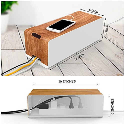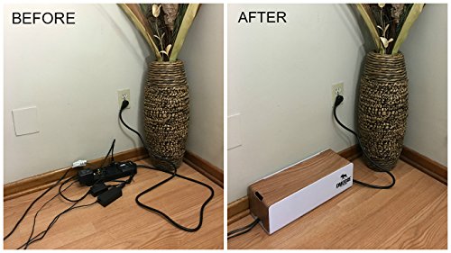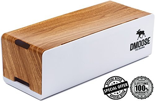 Cable Management Box Organizer by DMoose - Wooden Style - Hides Power Strips, Surge Protectors & Cords. Large Size for Entertainment Center, Home Office, Computers – Kids & Pet Friendly