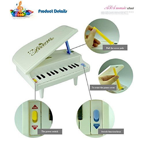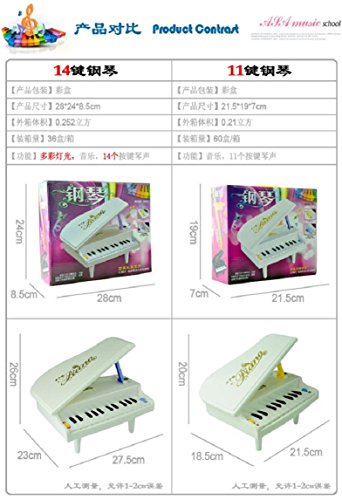 -. Feature : This is a simulation of children's music small toys, each key can make different sounds. / This is a children's music toys, there are many kinds of music, you can let your child enjoy the pleasure of nursery rhymes. / Materal: Plastic. Size:27.5x23x26cm. 100% Brand new and high quality. / It can help children improve the color, shape, and the understanding of music, promote the development of the brain. / Please put into 3 X AA batteries before your baby enjoy piano(without battery)