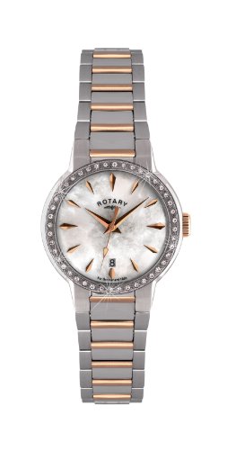 -. Title : Rotary LB02844-41 Ladies White Mop Dial Two Tone Bracelet Watch