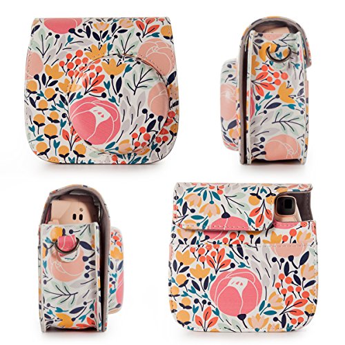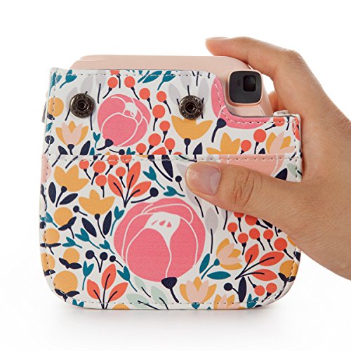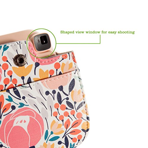 MINI POCKET on back of the camera case for films or photos. Extra adjustable long strap clasps onto the sides, makes it convenient to carry