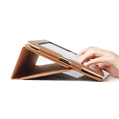 iPad Air 2 Case, BoriYuan Smart Genuine Leather Stand Folio Cover for Apple iPad Air 2 with Card Slot [Magnetic Sleep/Wake], with Stylus and Screen Protector, Vintage Brown