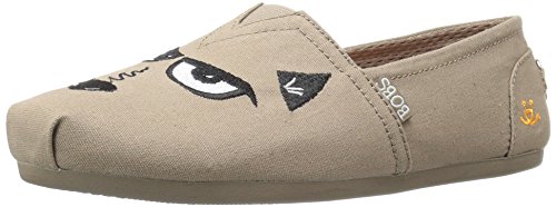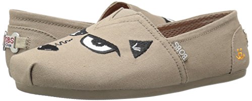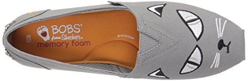 Binding : Apparel Product Description Show off some fun, fashionable cat-titude wearing the Skechers BOBS Plush Wishskers Alpargata. Soft woven textile upper with fun embroidered cat face design in a slip-on casual comfort alpargata with Memory Foam insole. Smooth woven textile fabric upper with three-color cat face design on front panel Embroidered ears, eyes, whiskers, and cute expression Top elastic fabric panel for easy slip-on fit Soft fabric shoe lining Memory Foam cushioned comfort insole Flexible rubber traction outsole BOBS helps make a difference for animals and kids. 0