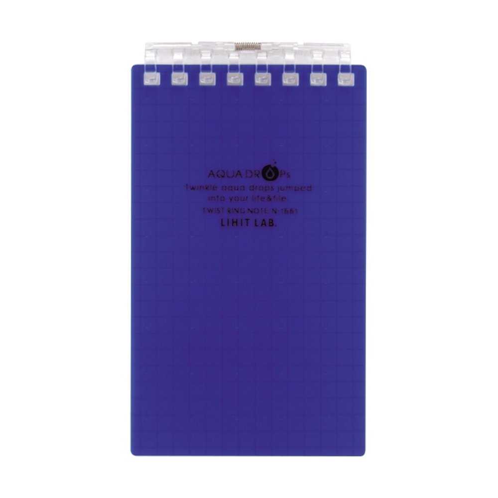 Lihit Lab Aqua Drops Twist Ring Memo Notepad - 2.8 X 4.7 - 5 mm Graph - 40 Sheets - Indigo Blue