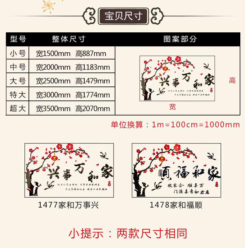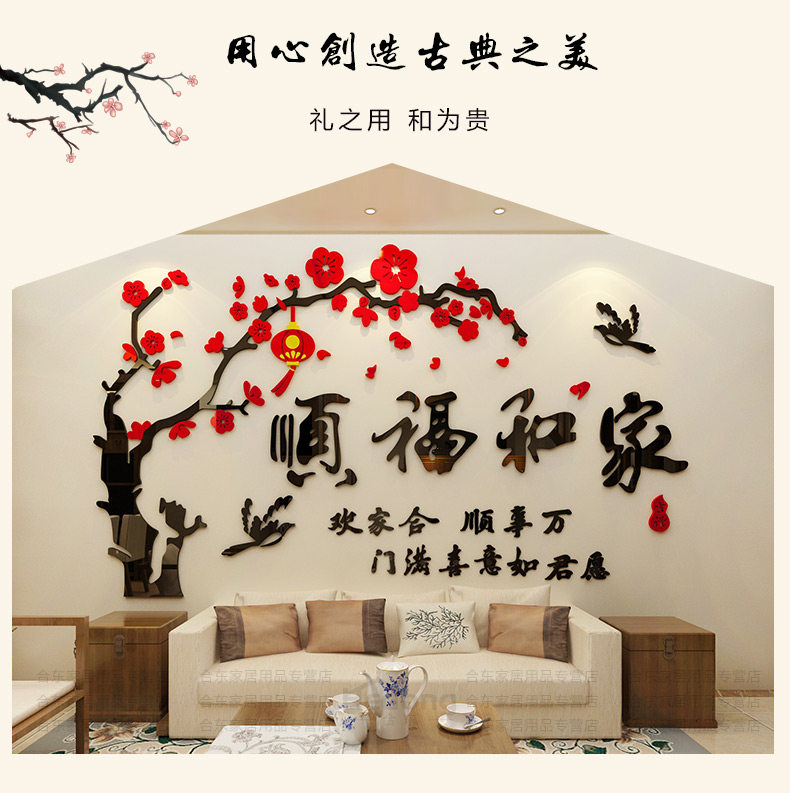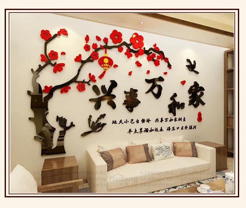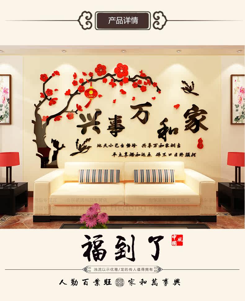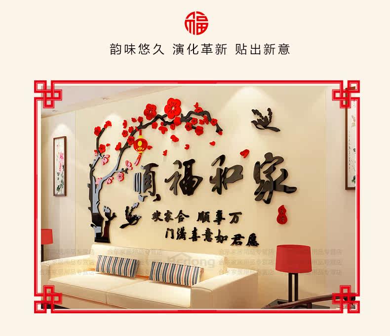 家和万事兴3D立体墙贴画客厅沙发电视背景墙壁贴纸房间墙上装饰品