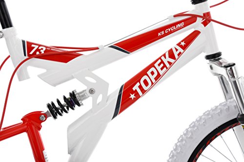 Perfekt für den Wochenend-Ausflug in den Wald. Das 20" Kinder-Mountainbike TOPEKA von KS Cycling ist für den Einstieg ins Mountainbiking optimal geeignet! Der weiße Rahmen mit seinen roten Details ist komplett durchgestylt und zieht dabei alle Blicke auf sich.