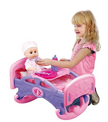 -. Binding : Toy -. Brand : Liberty Imports -. EAN : 0000649001239 -. Feature : Accessories Included (Tray, Bottle, Bowl, Utensils) / Pillow and Quilt Included / Made of Sturdy, Durable Plastic / Accommodates Dolls up to 14" Tall (Doll not Included) / Bed Fully Assembled Measures 18" x 12" x 12" -. Label : Liberty Imports -. Manufacturer : Liberty Imports -. MPN : 661-19 -. PackageQuantity : 1 -. PartNumber : 661-19 -. ProductGroup : Toy -. ProductTypeName : TOYS_AND_GAMES -. Publisher : Liberty Imports -. Studio : Liberty Imports -. Title : Mommy & Baby Rocking Bed Furniture for Dolls -. UPC : 000649001239