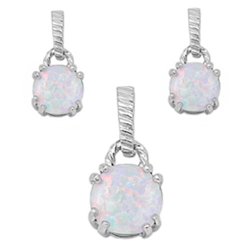 -. Title : Round Lab Created White Opal .925 Sterling Silver Earrings And Pendant Set