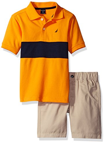 Nautica set which includes a short sleeve stripe polo and pull on shorts.