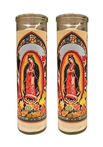 Our Lady of Guadalupe (Virgen de Guadalupe) Candle with Prayer, 8 Inches - 2 Pack.