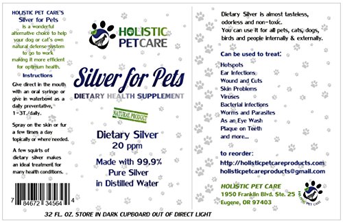 -. Title : Silver for Pets-32 Oz-20 PPM Dietary Health Supplement - For Dogs, Cats, Birds, Fish, Horses and All Pets