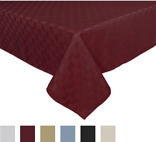 Amazon.com Review In spite of their sophisticated appearance, the Reflections linens are remarkably practical. They wash up in the machine for easy care, and their 100 percent polyester microfiber design causes liquids to bead up, so spills are a minimal problem. Styled with a subtle geometrical flair, the pieces feature a single hue with rectangles of contrasting finishes. Available in tablecloths of numerous sizes and shapes, the line also includes napkins and placemats for a fully dressed table. The range of colors is great for all seasons and occasions, and each piece features a finished hem for durability. --Emily Bedard