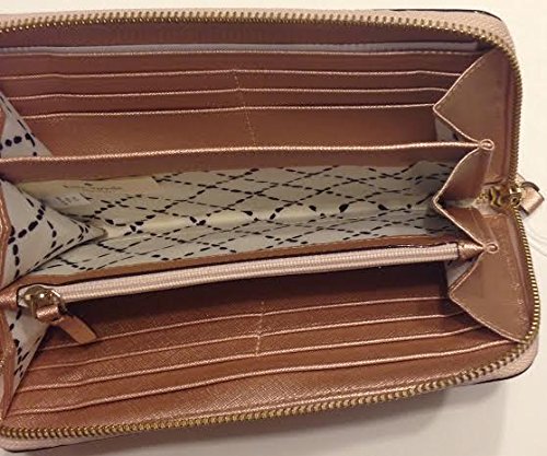 -. Brand : kate spade new york -. Color : Rose Gold -. Department : womens -. EAN : 0887898654832 -. Feature : Kate Spade Newbury Lane Neda Clutch Wallet Rose Gold Saffiano Leather WLRU1498 / Beautiful clutch in Rosegold Saffiano Leather, From the newest just released Holiday Collection / Zip around style wallet with KS nameplate on front and open slip pocket on back / Leather and fabric interior with 12 card slots and multiple full length bill compartments / Measures approximately 8" (L) x 4" (H) x 1" (W) -. Model : WLRU1498 -. PackageQuantity : 7 -. ProductGroup : Shoes -. ProductTypeName : HANDBAG -. Title : Kate Spade Newbury Lane Neda Clutch Wallet Rose Gold Saffiano Leather WLRU1498 -. UPC : 887898654832 Kate Spade Newbury Lane Neda Clutch Wallet Rose Gold Saffiano Leather WLRU1498 Wrapped in Rose Gold Saffiano leather with gold tone hardware. This Kate Spade zip around wallet is accented with the Kate Spade name plate on the front and features a full length slip pocket on the back. Top stitch detailing throughout. The interior is Rosegold leather with coordinating cream fabric. It features a center zippered compartment, 12 card slots and multiple full length bill compartments. Overall measurements of approximately 8" (L) x 4" (H) x 1" (W).