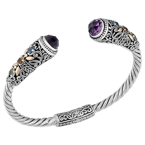 -. Title : Artisanica 18 Karat Yellow Gold And Sterling Silver Amethyst Multi-Gemstone Cuff Bracelet