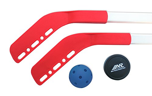 -. Binding : Sports -. Brand : A&R Sports -. Color : White -. EAN : 0610814231837 -. Feature : The perfect Starter set for your junior hockey all Star (recommended ages 6-13) / Includes two quality (2) 30-in. Player plastic sticks, one (1) mini plastic hockey puck, one (1) mini plastic ball / May be used for indoor or outdoor play / Stick measures 30 inch / From a and r sports, the leading brand in sports accessories for over 20 years / Puck and ball are hollow. -. Label : A&R Sports -. Manufacturer : A&R Sports -. Model : YHKYSET -. MPN : YHKYSET -. PackageQuantity : 1 -. PartNumber : YHKYSET -. ProductGroup : Sports -. ProductTypeName : SPORTING_GOODS -. Publisher : A&R Sports -. ReleaseDate : 2015-11-15 -. Studio : A&R Sports -. Title : A&R Sports Youth Hockey Set -. UPC : 610814231837