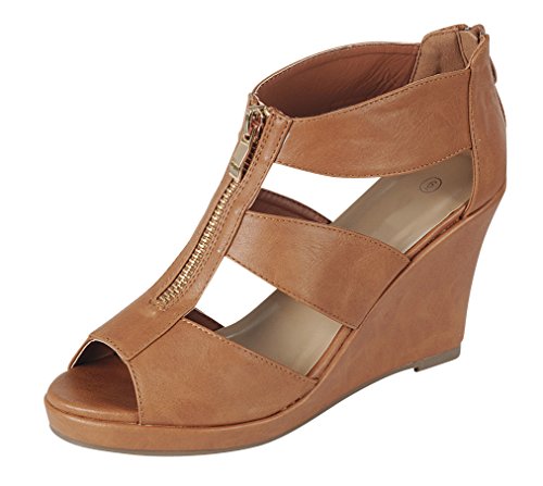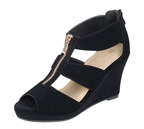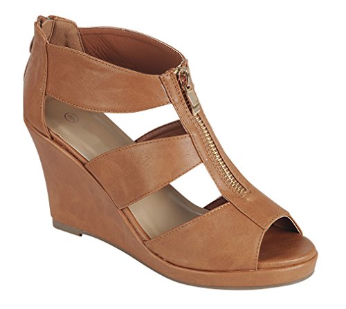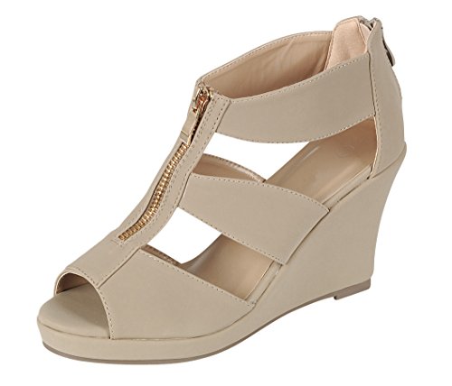 Product Description This platform wedge sandal from Cambridge Select features an open toe, side vamp cut-outs, back zip, a platform sole, and wedge heel. Imported. 0