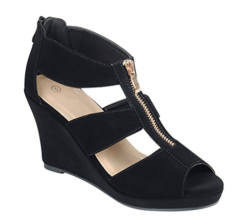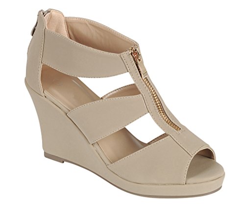 Cambridge Select Women's Peep Toe Caged Cutout Zipper Platform Wedge Sandal