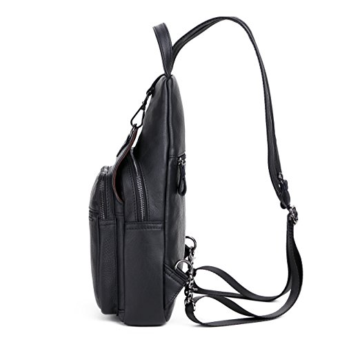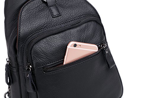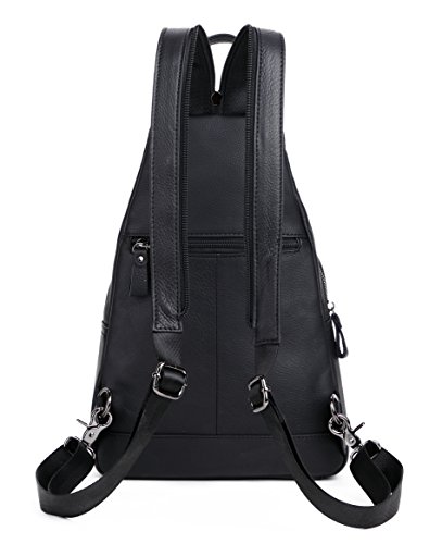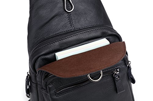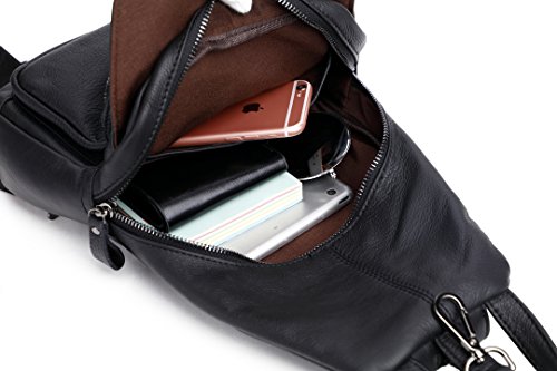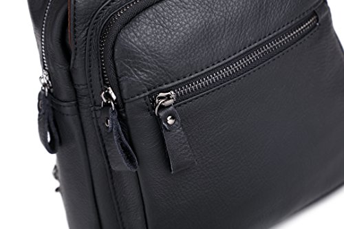 -. Feature : 100% genuine leather; first-rate, top-grade cowhide leather. No Colombian, no Vegan or whatever invention. Just leather and of first quality, that is, leather of a first layer / Leather shoulder bag, chest bag, little leather backpack; a little daypack/travelling bag. Coupled with the fact of pure leather, this vintage, eternal, all-sane design makes this shoulder bag/backpack fits both men and women / 1 year full warranty; 100% satisfaction guarantee: do not like it? We would be sad, but we would be sadder if you would be charged for something you did not like eventually. Never happened before; we work hard that it would not happen in the future. / Multipockets, multifunction leather bag. Special zippered patent in the back of the bag makes this bag a classic chest/sling bag or if you prefer, a backpack with two separated shoulder straps