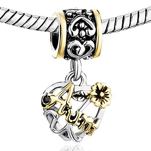 -. Title : CharmSStory Heart Love Aunt Flower Silver Plated Charms Dangle Beads For Bracelets