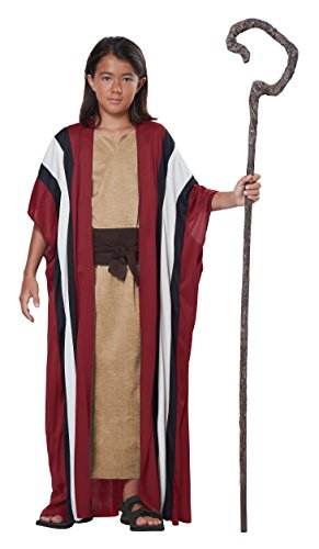-. Binding : Toy -. Brand : California Costumes -. Color : Maroon,tan -. Department : boys -. Feature : 100% polyester / Long, sleeveless pullover tunic has V-placket; printed to look like coarse weave / Maroon robe has open front, wide sleeves, vertical cream & black stripes / Brown faux suede belt fastens w/ Velcro / Also available in adult size -. Label : California Costumes - Toys -. Manufacturer : California Costumes - Toys -. Model : 476 -. MPN : CA00476 -. PackageQuantity : 1 -. PartNumber : CA00476 -. ProductGroup : Toy -. ProductTypeName : CHILDRENS_COSTUME -. Publisher : California Costumes - Toys -. Studio : California Costumes - Toys -. Title : California Costumes Shepherd/Moses Boy Costume