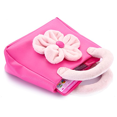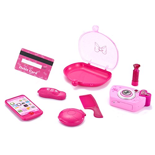 Studio : Joyin Toy Publisher : Joyin Toy Binding : Toy Product Description SUPER VALUE with Flower Bag, Pretend Camera, Smart Phone, Car Key, Mirror, Lip Stick, Coin Purse, Debit Card and Comb, All in Bright Pink Color. Perfect as My First Purse for Little Girls, Princess Pretend Purse. Ideal for Creative and Active Play Without Overwhelming. So Much Fun! Camera has Snapshot Sound Effect, Cell Phone has Ring Tones and Music. Your Little Princess's First Purse Just Like Mommy. Safe Play. Made of Toxin Free Materials, Safety Always Comes First. MONEY BACK GUARANTEE- "Contact Seller" and we will refund you or ship you a replacement if the one you received fail to work in 90 days. 0