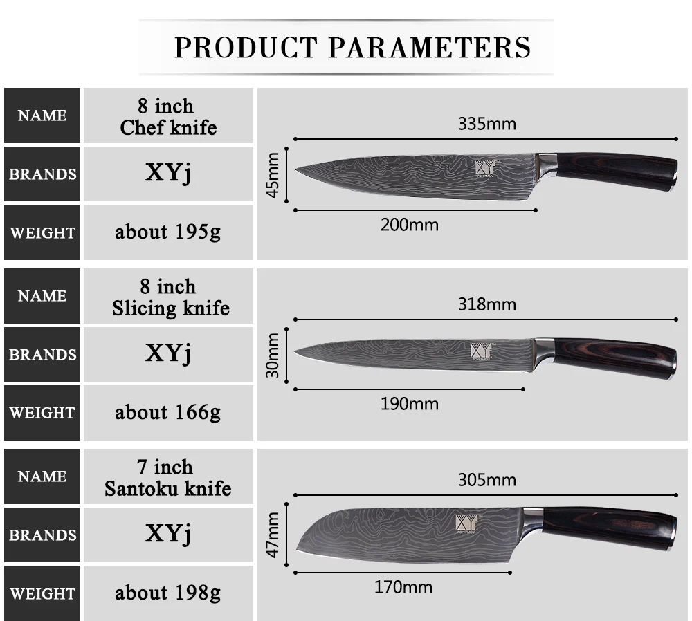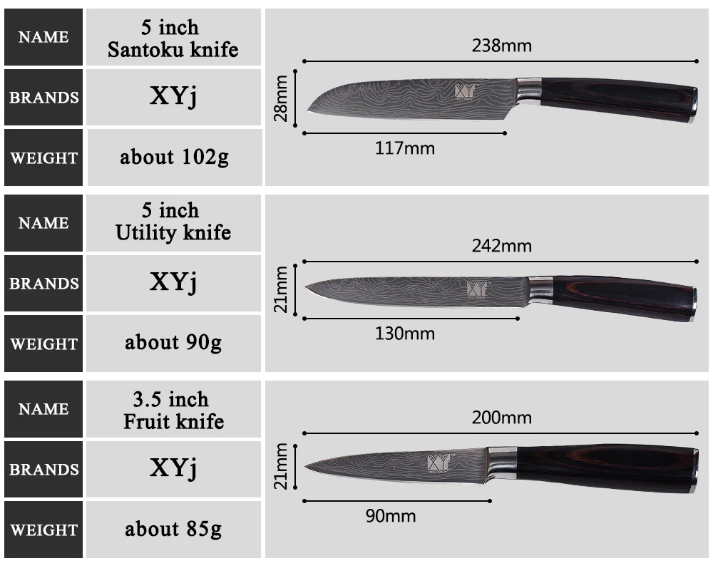 Knife Size:3.5 inch, 2*5 inch, 7 inch, 8 inch, 8 inch