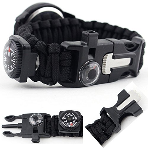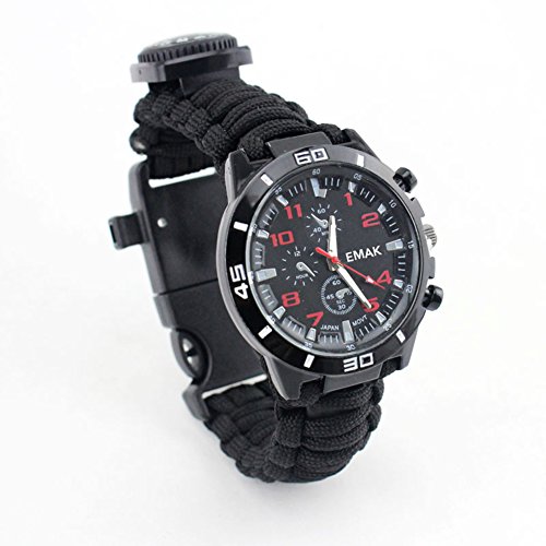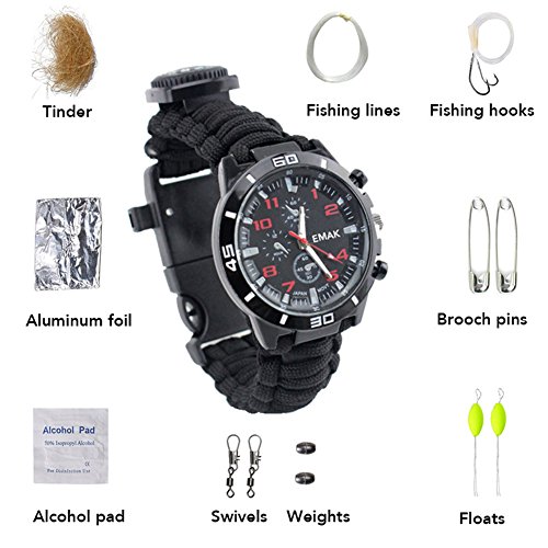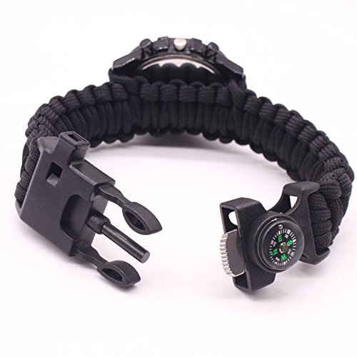 100% High quality and New Brand: Bracelet Watch + Compass + Whistle + Thermometer + Fire Starter Scraper + Paracord