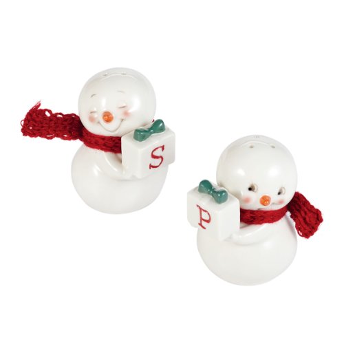 - Showcases two adorable snowman salt & pepper shakers accented with red hand-knit scarves