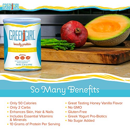 GreekGirl Beauty Protein for Women - Naturally Flavored Honey Vanilla - 30 Day Supply - Enhances Hair Skin and Nails - All Natural Greek Yogurt and...
