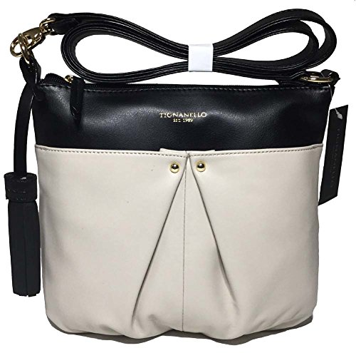 Product DescriptionTignanello Pretty Pleats Cross Body in Eggshell and Black Color0