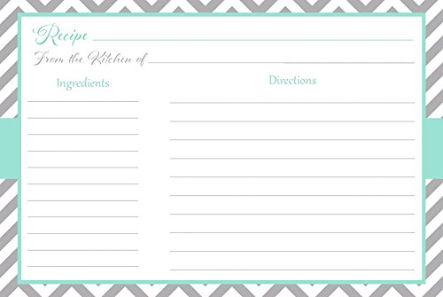 Recipe Cards, Double Sided, 4 x 6, Chevron Stripes, Mint, Green, Gray, Bridal, Wedding, Shower, Housewarming, Gift, Set of 24 Printed Cards,,