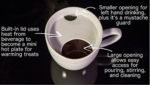 The built-in plate uses the heat from your coffee or tea to provide better insulation than your typical ceramic mug, so your morning beverage stays hotter longer.