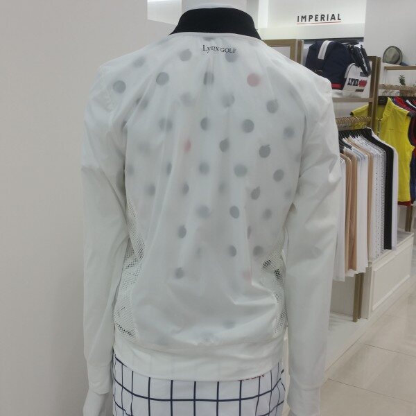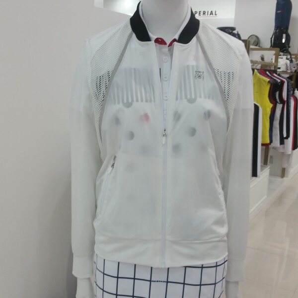 통풍성이 좋은 메쉬 소재에 경쾌한 디자인이 돋보이는 점퍼어깨선부터옆허리선까지 망사