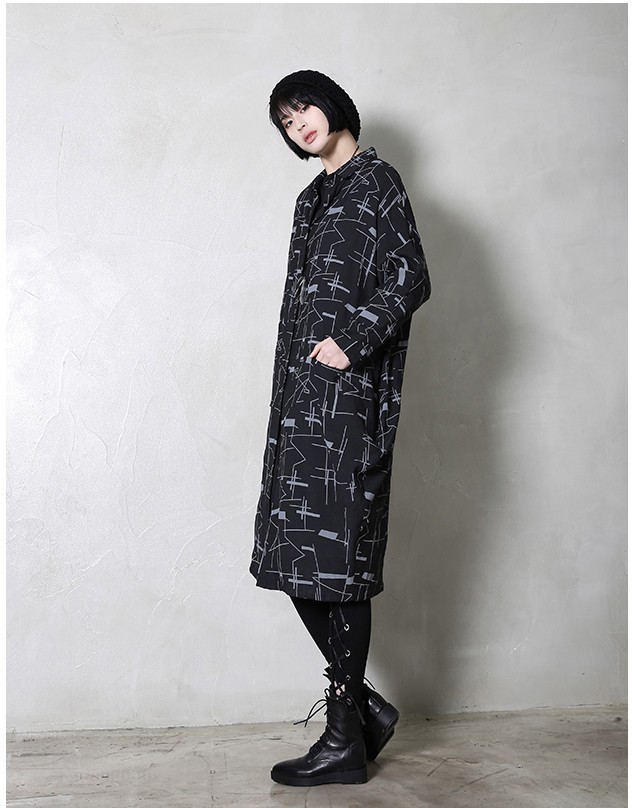 商品名:ジャケット レディース ロング丈 幾何学毛様 個性的 春 2018 モード系 個性的 40代 ファッション