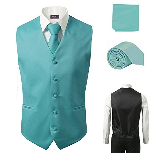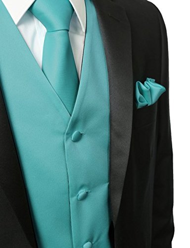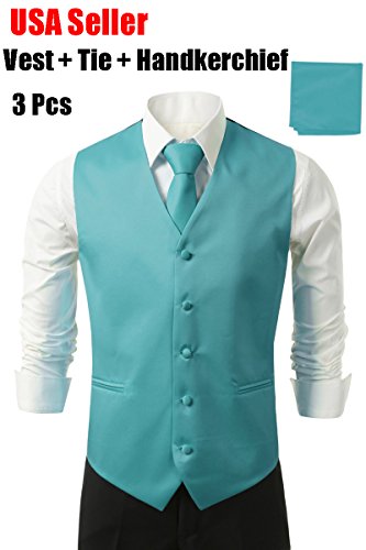 -. Title : 3 Pcs Vest + Tie + Hankie Turquoise Fashion Men's Formal Dress Suit Waistcoat