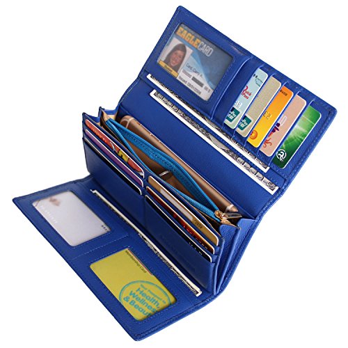 - ✔ GENUINE - Protects all magnetic stripes and EMV chips from wear and tear. Made with the Finest Grade Soft, Smooth Embossed Pebble Leather 14 RFID LOCK Credit Card Slots, Each can fit 1 or more cards, Big currency pocket. Convenient feature for those who travel