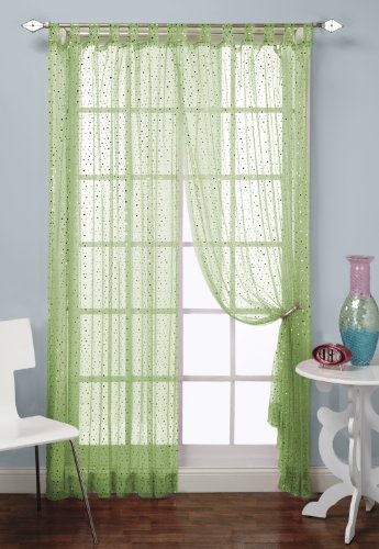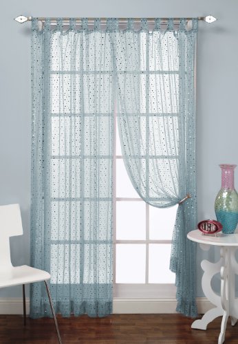 Groovy single sheer tab-top panel with sparkling color-coordinated sequins. Create dramatic glamour with this shimmering and airy bejeweled window makeover.Feature