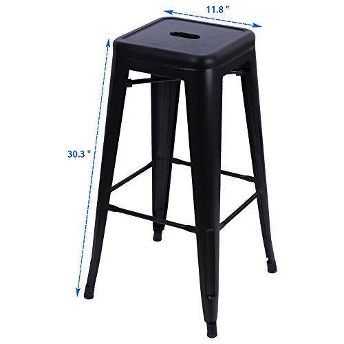 -. Brand : Furmax -. Feature : *Scratch and mar resistant steel with excellent polish finish. / *Best home and restaurant stools. All-around bistro,patio,café and restaurants chairs. / *Fully Assembled,Each Metal Bar Stools has a X-brace under the seat that provides additional support and stability. / *Stackable for Space Saving,No-mar rubber feet keep them from sliding and scratching hardwood floors. / *We offer a 30 days hassle free money back guarantee. -. Label : Furmax -. Manufacturer : Furmax -. ProductGroup : Furniture -. ProductTypeName : HOME_FURNITURE_AND_DECOR -. Publisher : Furmax -. Studio : Furmax -. Title : Furmax 30'' Metal Stools High Backless Indoor-Outdoor Counter Height Stackable Bar Stools Black (4 pack)