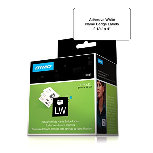 DYMO LabelWriter Labels White Adhesive Name Badges, White, 2-7/16- by 4-3/16-inch, Roll of 250 (30857). These labels are ideal for visitor management at events or in office settings. Direct thermal print technology provides clear lettering without messy, expensive ink or toner. For use with DYMO LabelWriter label printers. For outstanding results with your DYMO label makers, use genuine DYMO labels. Packed in a roll, so you can print one label or hundreds with ease without the label waste that can come with sheets.
